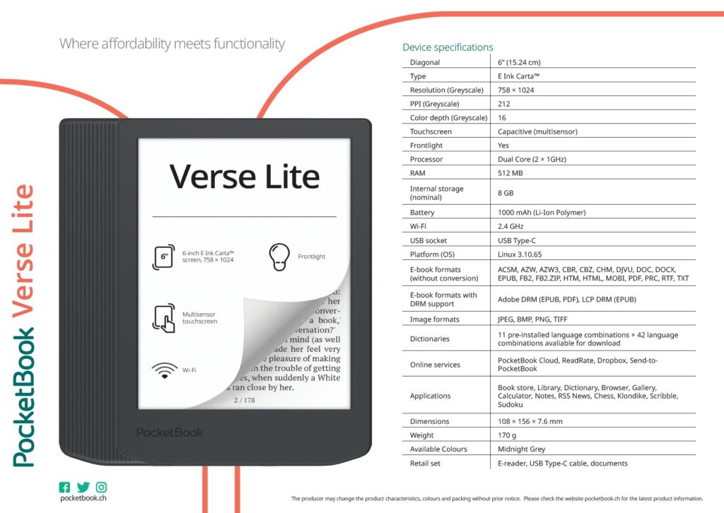 PocketBook eReaders, PocketBook Verse Series